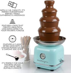 Transform your parties and special events into a chocolate lover’s paradise with the Nostalgia 4 Tier Electric Chocolate Fondue Fountain Machine. This stunning stainless steel chocolate fountain is excellent for parties, wedding receptions, or any occasion where you want to impress your guests with elegance and mouth-watering fun. This versatile fountain can also be used with cheese, ranch, and barbeque sauces for a savory twist. Don’t settle for ordinary party snacks – elevate your entertaining game with the Nostalgia 4 Tier Electric Chocolate Fondue Fountain Machine.