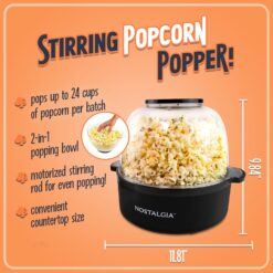 Nostalgia 6-Quart Stirring Popcorn Popper – Quick-Heat Technology – Makes 24 Cups of Popcorn – Includes Kernel Measuring Cup – Perfect for Birthday Parties, Movie Nights, and More – Black