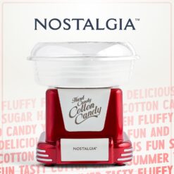 Nostalgia Cotton Candy Machine – Retro Cotton Candy Machine for Kids with 2 Reusable Cones, 1 Sugar Scoop, and 1 Extractor Head – Red