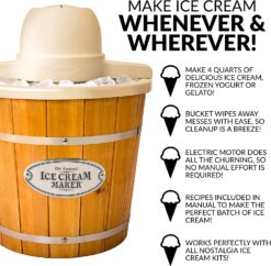 Nostalgia Electric Ice Cream Maker – Old Fashioned Soft Serve Ice Cream Machine Makes Frozen Yogurt or Gelato in Minutes – Fun Kitchen Appliance – Vintage Wooden Style – Light Wood – 4 Quart
