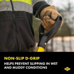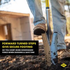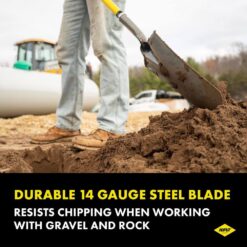 - Industrial grade 14-Gauge hollow back round point steel blade with forward-turned step for secure foot placement, blade measures 4.75 in. x 14 in.