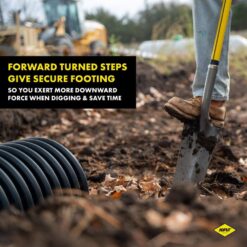 - Industrial grade 14 Gauge hollow back round point steel blade with forward-turned step for secure foot placement blade measures 4.75 in. x 14 in.