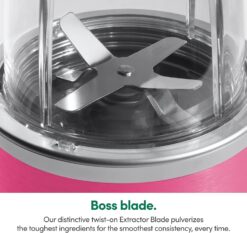 - Powerful stainless steel Extractor blades use Cyclonic action to break down tough ingredients. High-performance, BPA-free plastic cups are long lasting and Durable.