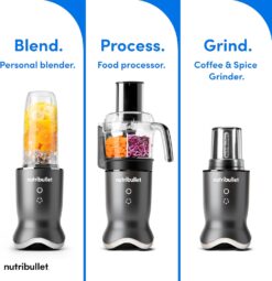 nutribullet® Ultra Plus+ 3-1 Compact Kitchen System, 1200W Kitchen System with Blender, Food Processor, and Coffee and Spice Grinder, 32oz and 24oz Blending Cups, 2-Cup Food Processor, Gunmetal Gray