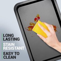 - EASY TO USE – Each sheet is designed with extra-wide, easy to hold handles that offer an outstanding grip when transferring from oven to surface. After each use, wash with dishwashing soap and warm water or pop them into a dishwasher for fast and easy cleaning. Store in a cool dry place for long-term endurance.
