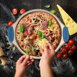 - HEATPROOF SILICONE HANDLES:The commercial grade restaurant quality kitchen bakeware features blue silicone handles to prevent accidental burns. Also stain-resistant, easy to clean & dishwasher safe but hand washing is recommended to extend pan life