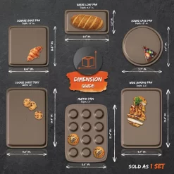 Take your baking to the next level with the NutriChef 6-Piece Nonstick Kitchen Bakeware Set! This is a professional home kitchen bake pan set that’s durable and reliable. It includes a cookie sheet tray, wide baking pan, square bake pan, oven muffin pan, bread loaf pan, and round cake pan.