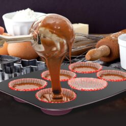 Features: – Professional Home Kitchen Bake Pan Set – Commercial Grade Restaurant Quality Metal Bakeware – Durable & Reliable Cookie & Muffin Sheet Oven Pan Style – Attractive, Stylish Non-Stick Coating – Dishwasher Safe – Long-Lasting, Stain-Resistant & Easy-to-Clean – Premium Food Grade Bake Pan Construction – Space-Saving Stackable Wide Tray Pan Design – Not Recommended for Microwave and Any Appliances that Use Fire – Ideal Use for Baking Cake, Cookie, Bread, Brownies, Lasagna, etc. – Used with Kitchen Ovens, Countertop Convection Ovens, Toaster Ovens – Great for Food Prep, Serving, Cooking, Sweet Treats, Pastry Dessert Baking What’s in the Box: – (2) Sheet Pan, 0.5mm – (2) 6 Cups Muffin Pan, 0.5mm – Round Cake Pan, 0.5mm – Loaf Pan, 0.6mm thick – Square Cake Pan, 0.6mm – Deep Baking Pan, 0.6mm Technical Specs: – Temperature Resistance: Up to 450° Fahrenheit (232° Celsius) – Construction Material: Carbon Steel with Non-stick Coating – Metal Tray Thickness: 0.5~0.6mm – Sheet Pan Size: 15.4’’ x 10.2’’ x 0.8” -inches – Muffin Pan Size: 10.8’’ x 8.6’’ x 1.1” -inches – Round Cake Pan Size: 6.7’’ x 1.4’’ -inches – Loaf Pan Size: 9.1’’ x 4.7’’ x 2.3” -inches – Square Cake Pan Size: 8’’ x 8’’ x 2.4” -inches – Deep Baking Pan Size: 15.4’’ x 10.2’’ x 3.5” -inches