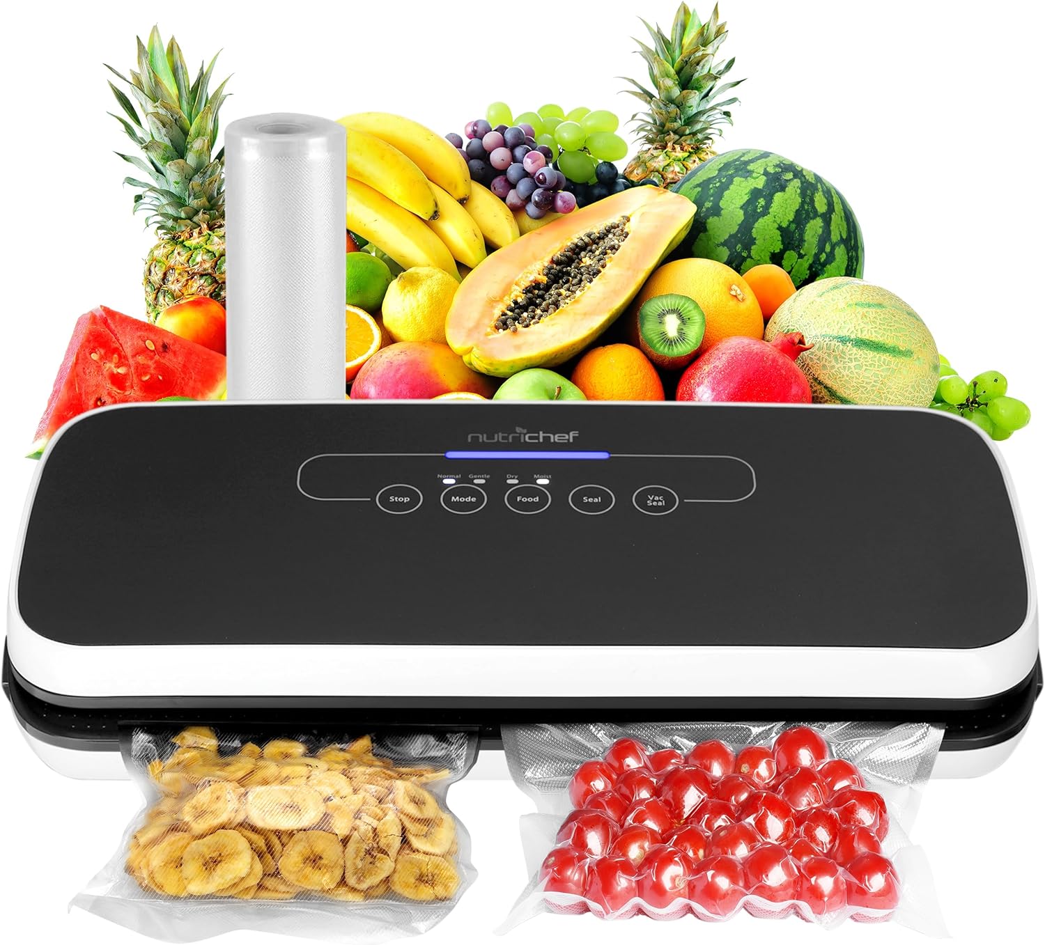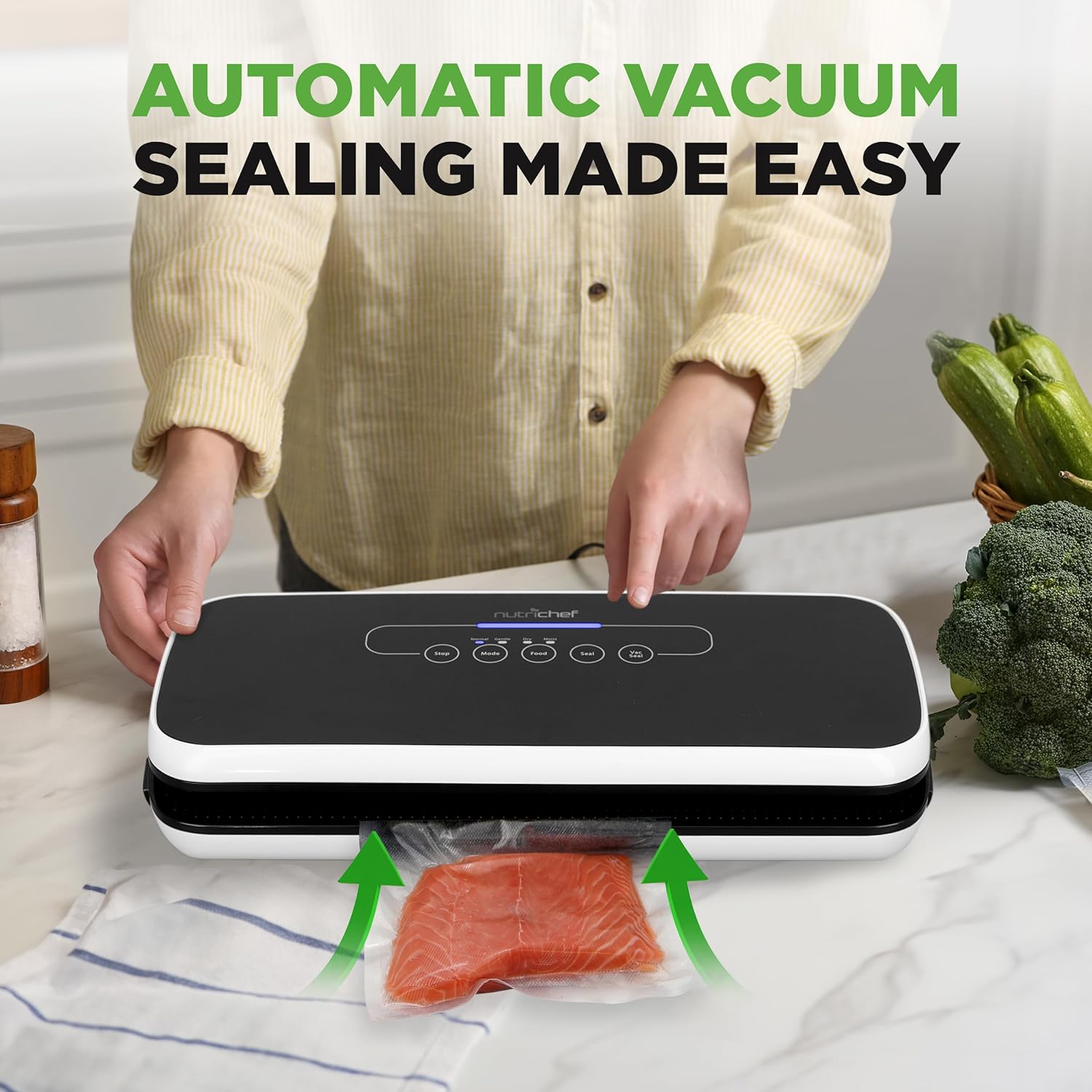 NutriChef Automatic Vacuum Air Sealing System for Food Preservation with Starter Kit, Compact Design, Lab Tested, Dry & Moist Food Modes with Led Indicator Lights, Black