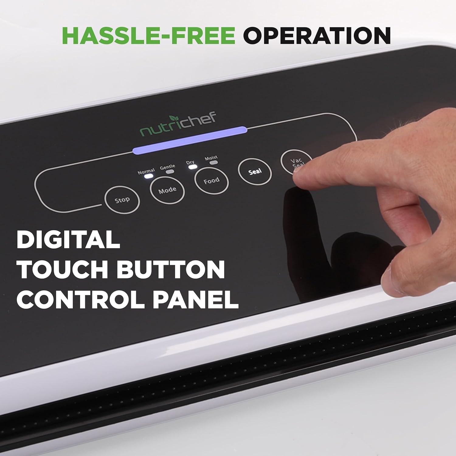 - Two sealing modes: Useful and practical, the NutriChef vacuum sealing system is cleverly designed owning two selectable modes to provide your food with the best possible preservation based on the type of food you want to seal You can choose the dry indication for solid food items and the moist indication for poached, simmered or steamed food