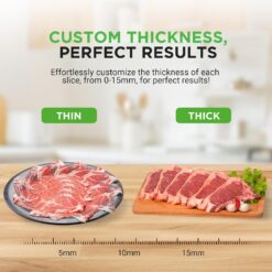 - POWERFUL YET REFINED MEAT SLICER – Boasting 200W power, and 110V voltage, this meat slicer machine is ideal. Its 15-mm tuning range caters to diverse slicing needs. The sleek black design adds a touch of sophistication to any kitchen.