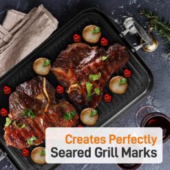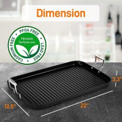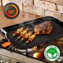 - NONSTICK COATING: The 20″ x 13″ nonstick grill pan cookware features a non-stick coated layer surface that ensures quick, effortless food release and eliminates the need for butter, oil, or cooking spray. Makes tasty homemade food slide out easily