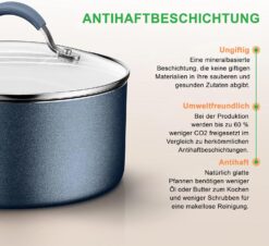 - NON-STICK SURFACE: This cookware set boasts a durable, PFOA/PFOS-free non-stick coating, ensuring effortless food release, easy cleaning, and healthier cooking. Its heat-resistant lacquer exterior stands up well to high temperatures
