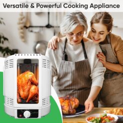 - SPINNING STYLE: This revolutionary vertical cooking rotating cookware assists in creating desired crispy skins. Spinning-Style cooking evenly cooks food inside and out and the dual high-powered vertical heating element crisp the exterior and lock in the flavor, aroma, and tender juices inside