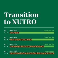 | Directions | * Every cup of our food is nutrient dense so your cat gets the right amount of calories in a complete and nutritious meal. * To help maintain freshness, seal bag tightly and store in a cool, dry location. Suggested Amounts to Feed Per Day (Cups)‡ Cat Weight Feeding Amount 4 lbs. 1/3 8 lbs. 1/2 12 lbs. 2/3 16 lbs. 3/4 20 lbs. 1 ‡ Use a standard 8 oz. measuring cup which holds 3.64 oz. of NUTROTM WHOLESOME ESSENTIALS™ Indoor Senior Farm-Raised Chicken & Brown Rice Recipe Cat Food. |