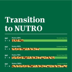 FEEDING GUIDELINES: • These are the recommended feeding amounts based on the ideal body condition for adult dogs of various weights. Individual dogs’ energy requirements may differ. Adjust the amount fed to obtain or maintain your dog’s optimum weight. Keep fresh drinking water available at all times, provide plenty of exercise and see your veterinarian regularly. Serve dry or lightly moistened. • Every cup of our food is nutrient dense so your dog gets the right amount of calories in a complete and nutritious meal. • To help maintain freshness, seal bag tightly and store in a cool, dry location. Suggested Amounts to Feed Per Day (Cups)‡ Dog Weight Feeding Amount 15 LB 1 – 1 1/4 25 LB 1 2/3 – 2 35 LB 2 – 2 1/2 45 LB 2 1/2 – 3 55 LB 3 – 3 1/3 65 LB 3 1/3 – 3 3/4 ‡Use a standard 8 oz. measuring cup which holds 3.31 oz. of NUTROâ„¢ NATURAL CHOICEâ„¢ Small Bites Adult Chicken & Brown Rice Recipe Dog Food.