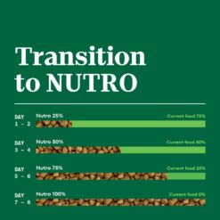 | Directions | “These are the recommended feeding amounts based on the ideal body condition for adult cats of various weights. Individual cats’ energy requirements may differ. Adjust the amount fed to obtain or maintain your cat’s optimum weight. Keep fresh drinking water available at all times, provide plenty of exercise and see your veterinarian regularly. Serve dry or lightly moistened. Every cup of our food is nutrient dense so your cat gets the right amount of calories in a complete and nutritious meal To help maintain freshness, seal bag tightly and store in a cool, dry location. Suggested Amounts to Feed Per Day (Cups)‡ Cat Weight Feeding Amount 4 lbs. 1/4 8 lbs. 1/2 12 lbs. 2/3 16 lbs. 3/4 22 lbs. 1 ‡Use a standard 8 oz. measuring cup which holds 3.85 oz. of NUTROâ„¢ WHOLESOME ESSENTIALSâ„¢ Adult Cat Salmon & Brown Rice Recipe Cat Food. Transitioning To Our Food: If feeding NUTROâ„¢ Cat Food for the first time or changing recipes, we suggest you blend increasing amounts of the new recipe with your old cat food for six days.” |