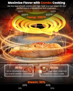 - EASY GOURMET OVEN – Achieve gourmet cooking with ease. Simultaneously steam for juicy interiors and air fry for crispy exteriors using COMBO mode. With 120 presets, cooking has never been easier or more delicious for perfect results every time.
