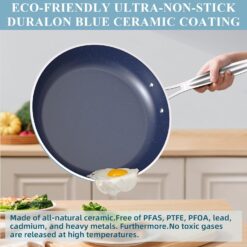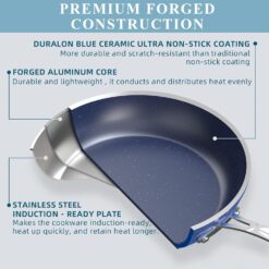 - HEALTHY DURALON BLUE COATING – The eco-friendly, ultra-non-stick Gen10 Duralon Blue is all-natural ceramic coating free of harmful chemicals like PFAS*, PTFE, PFOA, lead, and cadmium. It also does not emit toxic gases at higher temperatures. *Tested by TÜV Rheinland for 106 known PFAS elements and none were detected.