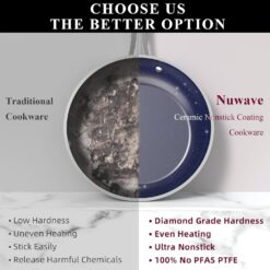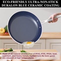 - HEALTHY DURALON BLUE COATING – The eco-friendly, ultra-non-stick Gen10 Duralon Blue is all-natural ceramic coating free of harmful chemicals like PFAS*, PTFE, PFOA, lead, and cadmium. It also does not emit toxic gases at higher temperatures. *Tested by TÜV Rheinland for 106 known PFAS elements and none were detected.
