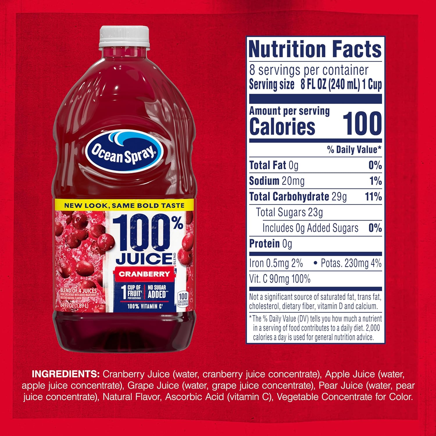 Cranberry Juice (water, cranberry juice concentrate), Apple Juice (water, apple juice concentrate), Grape Juice (water, grape juice concentrate), Pear Juice (water, pear juice concentrate), Natural Flavor, Ascorbic Acid (vitamin C), Vegetable Concentrate for Color.