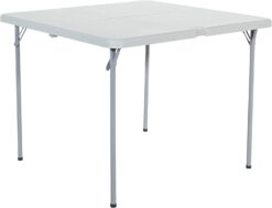 Our resin tables are made of sturdy HDPE blow molded plastic. The resin surface is waterproof, stain resistant, and will not chip or crack. The powder-coated steel tube framing provides strong long-lasting use and lightweight portability. Designed for easy clean-up both indoors and outdoors.