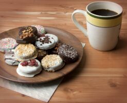 - INCREDIBLY LUSCIOUS RICH TASTE: You and your family will enjoy the unique flavors of these festive sandwich cookie snacks. These visually stunning petit fours are alternatively dipped in dark and white chocolate with contrasting toppings that highlight the premium taste of the creamy chocolate.