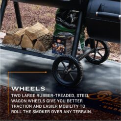 - WHEELS: Two large rubber-treaded, steel wagon wheels give you better traction and easier mobility to roll the smoker over any terrain.