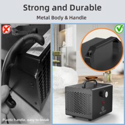 - 【HIGH QUALITY】 – Adopt an exquisite all-metal shell, sturdy and durable, weighs only 5.9 pounds, and is equipped with a metal handle, which is convenient for you to carry with you. This is a great ozone machine for home, industrial, or commercial use.