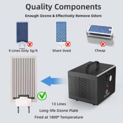 ONAMOR Ozone Generator 12000mg/h – Ozone Machine Ionizer & O3 Deodorizer for Home, Basement, Smoke, and Pet Room. (Eliminating Odors Area up to 2000 Square Feet – All Metallic Black)