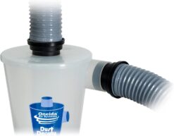 The new 2.5 model features the same mounting flange (3″ I.D.) as the original Dust Deputy cyclone, making it quick and easy to upgrade existing setups!