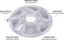 Female inlet and outlet ports (2.25″ I.D.) readily accept the 2.5″ cuffed hose fittings standard with shop vacuums commonly used for dust collection.