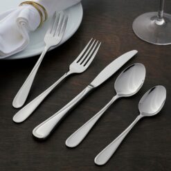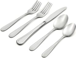 | Included Components | Set includes 8 each: Dinner knife, Dinner Fork, Salad/Dessert Fork, Soup/Cereal Spoon and Teaspoon plus 2 Serving Spoons, 1 Serving Fork, 1 Sugar Spoon, and 1 Butter Knife |