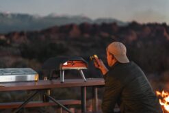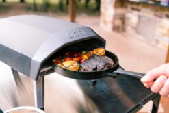 - Easy to use – Ready to go straight out of the box! Simply unfold the legs, insert the pizza stone baking board, connect up to a gas tank and you’re ready to go. Featuring instant gas ignition, you will be cooking your favourite pizzas in no time – Or maybe you want to roast some meat, fish or veg? Because if you combine the Koda 12 with one of the Ooni cast iron cooking accessories, it becomes more than a pizza maker!