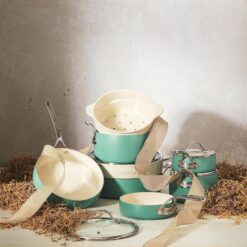 - SUITABLE ON ALL STOVETOPS: these sage green pots and pans are all suitable to use on gas, electric, ceramic, halogen and induction stovetops