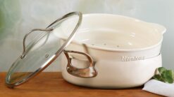 Oprah’s Favorite Things – 6-QT Aluminum Enamel Everyday Pan w/Non-Stick Non-Toxic Ceramic Interior and Ceramic Steamer Insert – Oat White