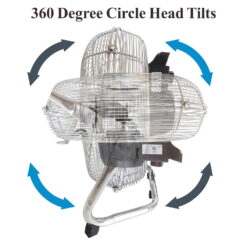 - All-metal construction with heavy-duty aluminum blade; reinforced, circular chrome wire grille for added safety; ideal for industrial settings as well as any area that needs to move high volumes of air