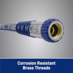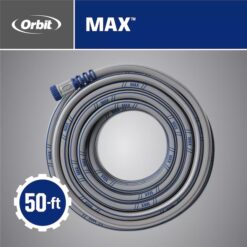 The innovative Orbit Max flex polyfusion professional-grade water hose features advanced technologies that make any watering task more efficient and more enjoyable. Engineered with POLYFUSION Technology®, a premium polymer compound, to provide heavy-duty strength with the feel of a lightweight hose that can maneuver with ease. The Antikink Technology® construction provides a self-straightening feature, that when under pressure keeps kinking to a minimum. The hose has the look and feel of rubber and is abrasion resistant. Wrench-free, crush-resistant couplings with an anodized aluminum male-end and brass female-end. The couplings have heavy-duty easy to grip collars at both ends to make installation a breeze. The Orbit Max POLYFUSION professional-grade water hose offers the most valued features in watering functionality to date. This combines heavy-duty performance, a lightweight feel, kink-resistance, flexibility, and mobility into a hose that is ideal for any watering need, whether in the garden, home, jobsite, or industrial applications.
