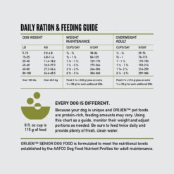 | Directions | Because your dog is unique and ORIJEN pet foods are protein-rich, feeding amounts may vary. Using this chart as a guide, monitor their weight and adjust portions as needed. Be sure to feed twice daily and provide plenty of fresh, clean water. |