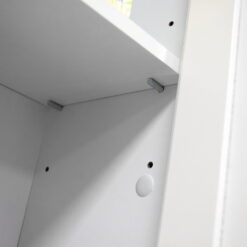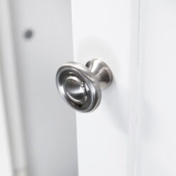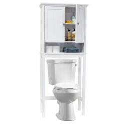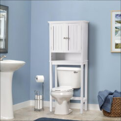 Add some style and functionality storage to your home’s interior with this OS Home and Office Furniture Bathroom Space Saver-Over-Toilet Storage Cabinet. Made of sturdy wood, it features a neutral white finish. The unit has a freestanding design with 2″ legs that help to provide stabilizing support. This white over-the-toilet storage unit also features a thick beveled top for added style. Additionally, it has an open shelf for display or storage as well as two raised panel vein lined doors with brushed nickel knobs that provide additional hidden storage space. This OS Home and Office Furniture Bathroom Space Saver-Over-Toilet Storage Cabinet comes with all the necessary hardware for installation.