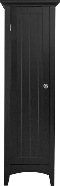 Add extra storage to your kitchen with the OS home and office model 25601 black one door pantry. The classic painted raised panel door hides 3 adjustable and removable shelves. The brushed aluminum finished pull adds just the right flair.