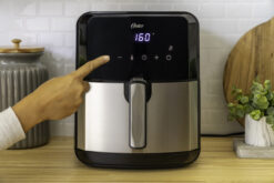 OSTER’S LONGEST-LASTING NONSTICK: Oster air fryer oven interior cooking surface is reinforced and infused with diamond particles that form a structural matrix, creating a stronger coating for superior nonstick performance over time—it’s Oster’s longest-lasting nonstick yet EXTRA-LARGE CAPACITY: 5-quart capacity, dishwasher-safe cooking basket (see instruction booklet for detailed cooking instructions), perfect for family snacks and meals MULTI-FUNCTION, EASY TO USE: Digital touchscreen features 8 preset cooking functions, including Fries, Chicken, Fish, and Dehydrate; 80- to 400-degree temperature range with overheating protection