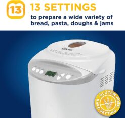 - 13 settings for making a variety of breads, dough, jams–even gluten-free bread