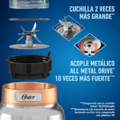Inspired by our classic Oster blender, this model is more durable and powerful. Its metallic finish on the base is more elegant for a demanding consumer like you. The jar has a 1.75 liter capacity, a 2 peak horsepower motor, and a larger than regular ice crusher blade. It is a blender that allows you to prepare the richest dishes, juices and smoothies with hard or difficult-to-mix ingredients every day. In it you can mix everything from soups and smoothies, to juices, muffins, sauces, seasonings, cakes and many other recipes. Whatever provokes you, you can do it in a simple, easy and pleasant way, obtaining professional results. It is the blender that gives you the power to create everything you imagine.