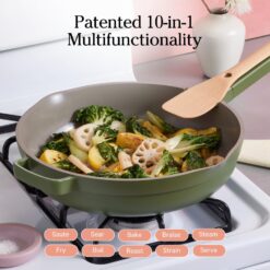 - PATENTED 10-IN-1 COOKWARE: Performs the functions of a fry pan, steamer, skillet, sauté pan, saucepan, nonstick pan, spatula, and more, making it the most versatile and space-saving piece in your kitchen.