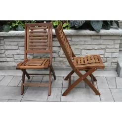 The Outdoor Interiors Eucalyptus Hardwood Folding Side Chairs provide durable comfort with a folding element for easy storage and use. These hardwood Folding Side Chairs are made from sustainable, plantation-grown eucalyptus and are finished with a beautiful brown umber stain for long-lasting outdoor use and exceptional durability. The curved seats and backrests give the chairs great comfort with no cushions necessary.