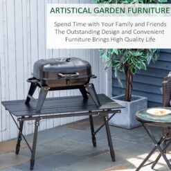 Tired of carrying around a bulky barbecue grill for camping or cookouts? Outsunny has a small and portable charcoal grill to keep in the car. It has a compact size and folds, so you can put it in your trunk and take it with you on the road. Its large grill rack and top warming rack let you cook for 4 people at a time. Whether you spell it barbecue, barbeque, or just BBQ, you cook for flavor. Control temperature with the top vent to cook low and slow on the go. Get out, cookout, get Outsunny.