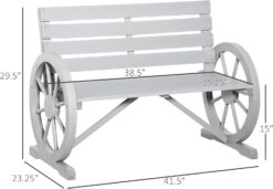 Outsunny Wooden Wagon Wheel Bench, Rustic Outdoor Patio Furniture, 2-Person Seat Bench for Backyard, Patio, Garden, 41.5″ x 23.25″ x 29.5″, Charcoal Grey