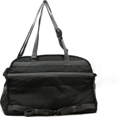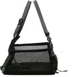 - Interior safety strap clips to harness to secure dog during rides