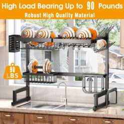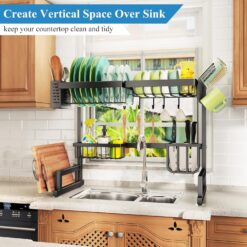 - Material and Durability: made of high-quality metal stainless steel and durable enough for long-term use. The over-the-sink dish drying rack Load-bearing is 80 pounds.
